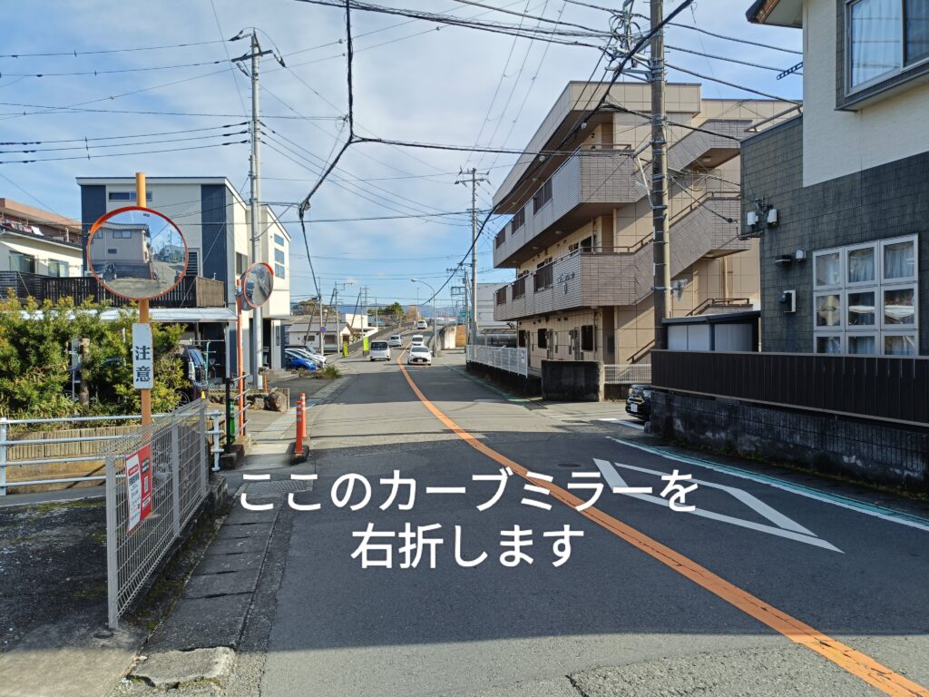 沼津市役所方面からサントムーンへ向かう途中、175号線へ入り森岡医院過ぎてカーブミラー右折